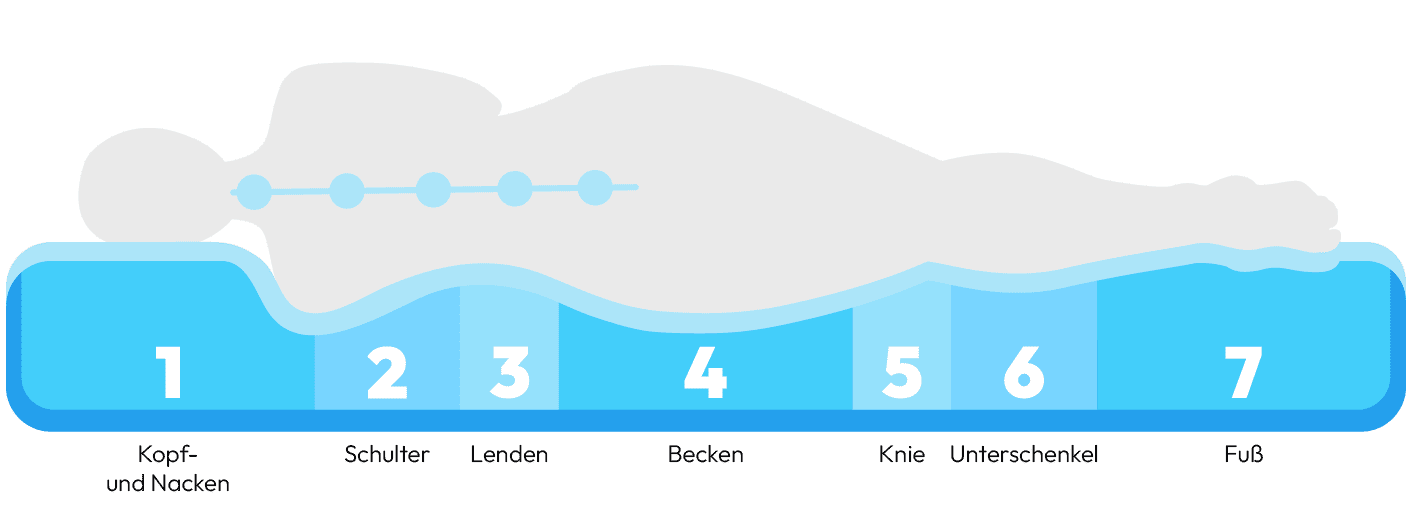 Hier erfahren Sie, wie die 7-Zonen-Aufteilung konkret zur Druckentlastung und optimalen Körperunterstützung beiträgt.