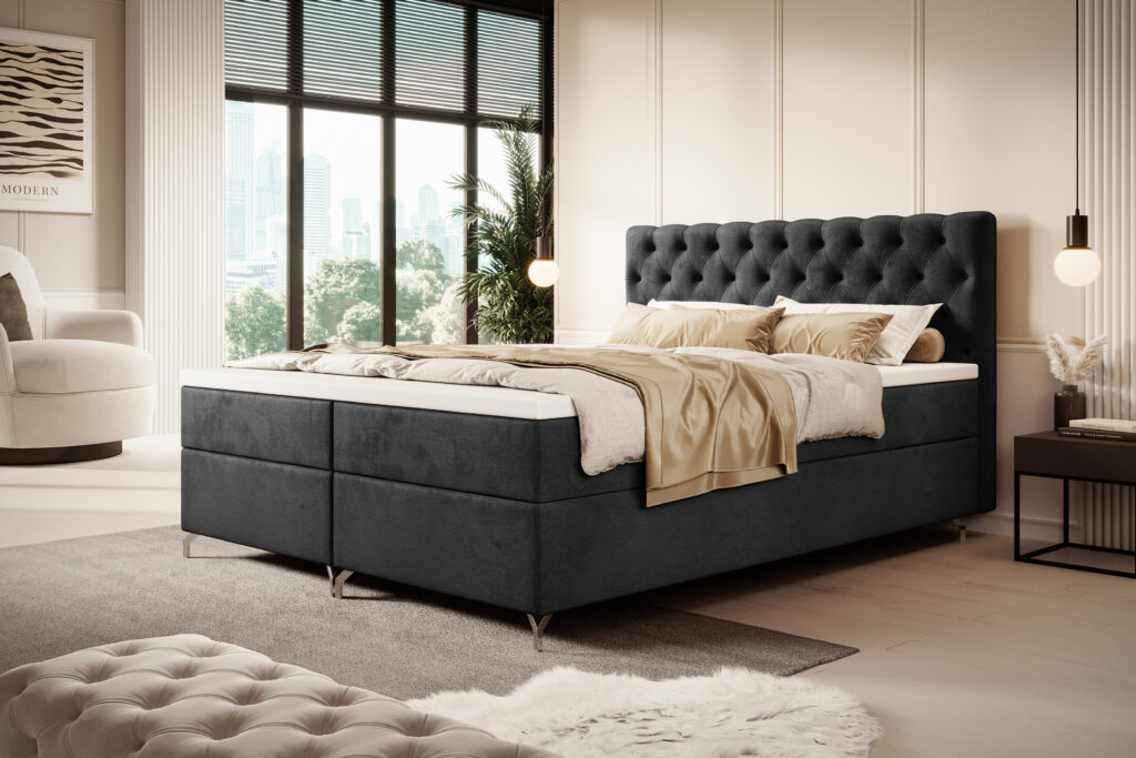 Unser Boxspringbett Chester vereint luxuriösen Schlafkomfort mit cleverer Funktionalität. Mit seinem integrierten Bettkasten bietet es nicht nur eine erholsame Nachtruhe, sondern auch praktischen Stauraum für Bettwäsche, Decken oder andere Utensilien. Erhältlich in den Größen 140x200 cm, 160x200 cm und 180x200 cm, passt das Chester perfekt in jedes Schlafzimmer.