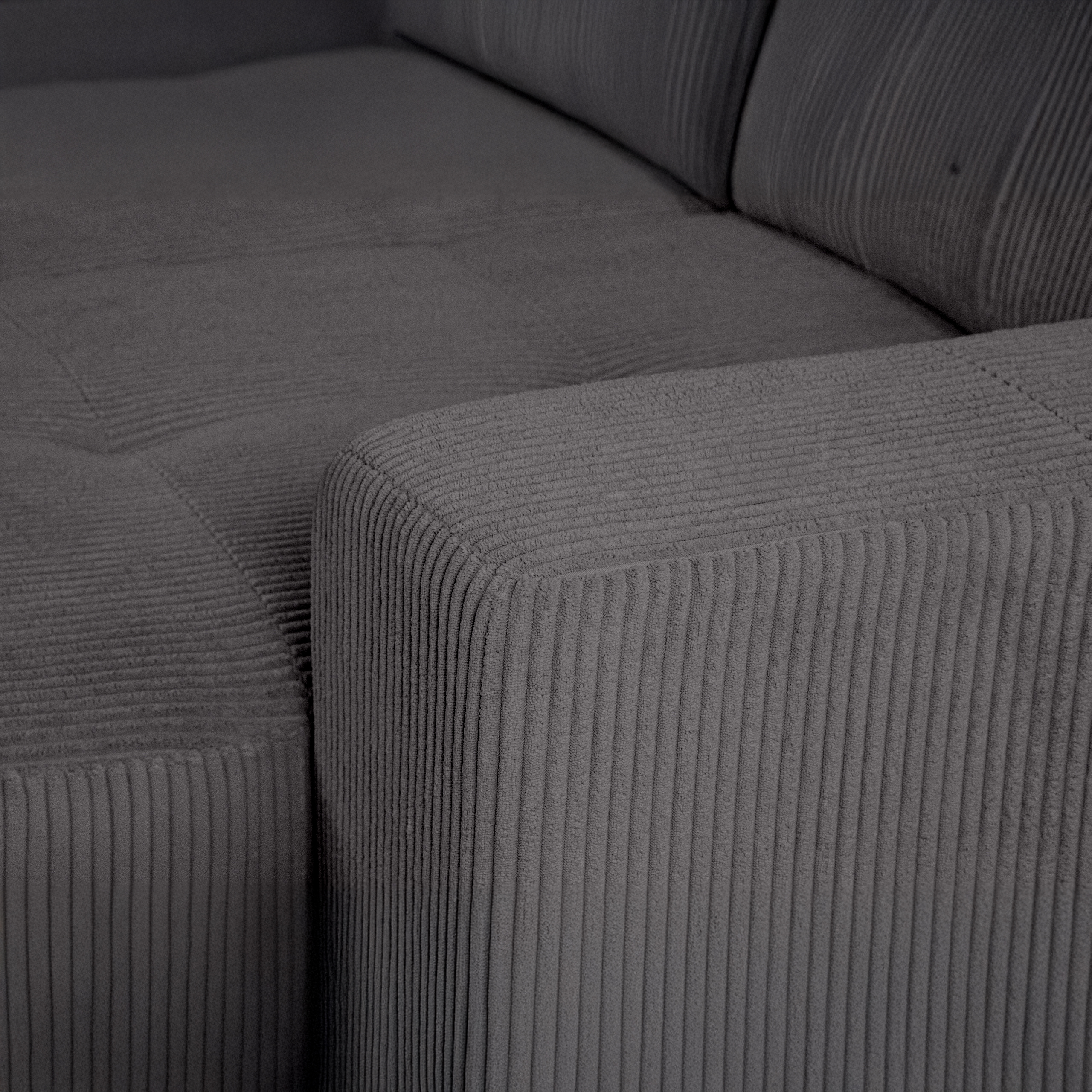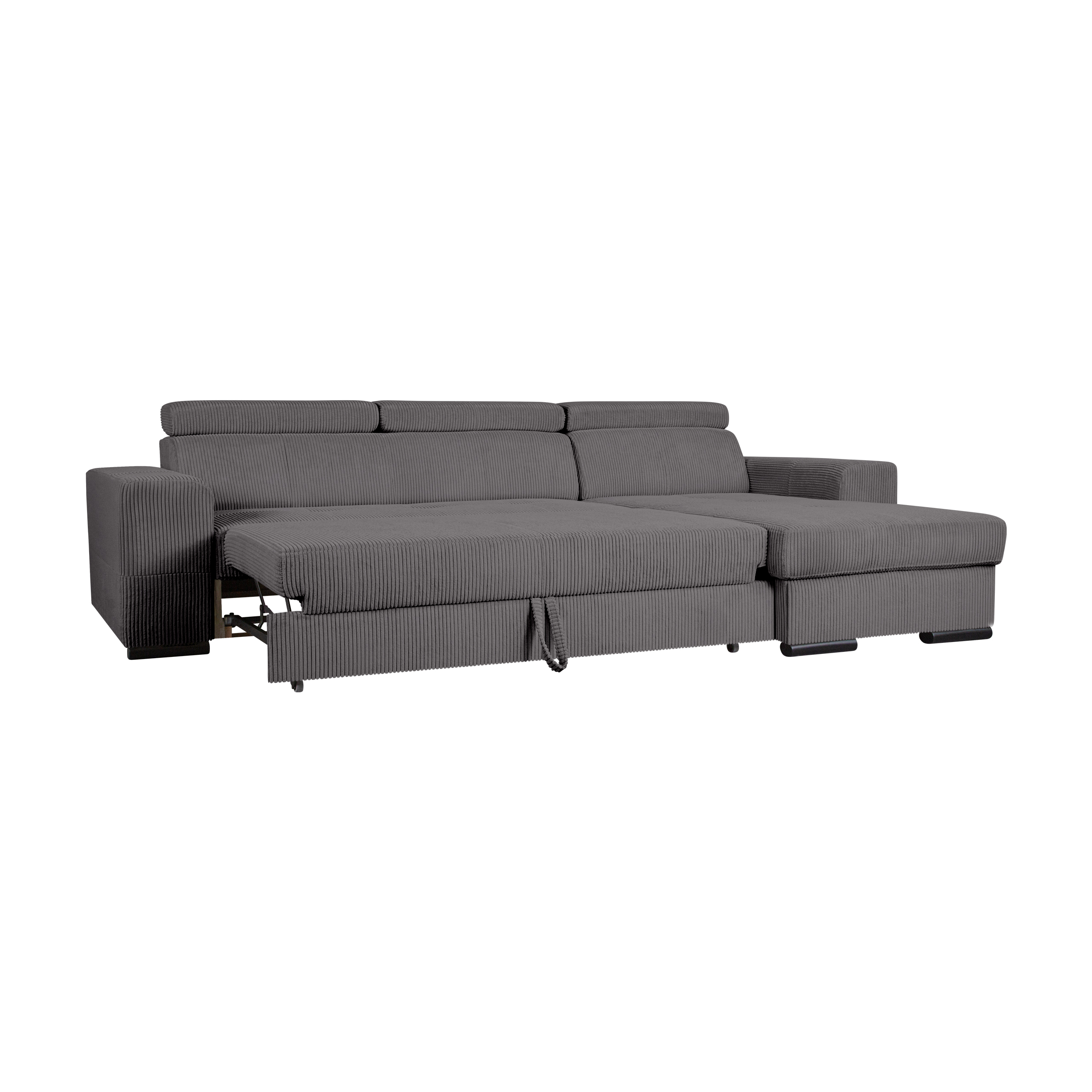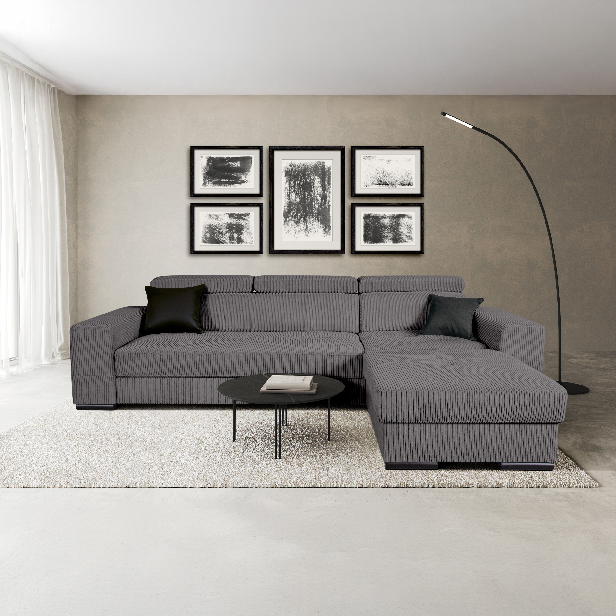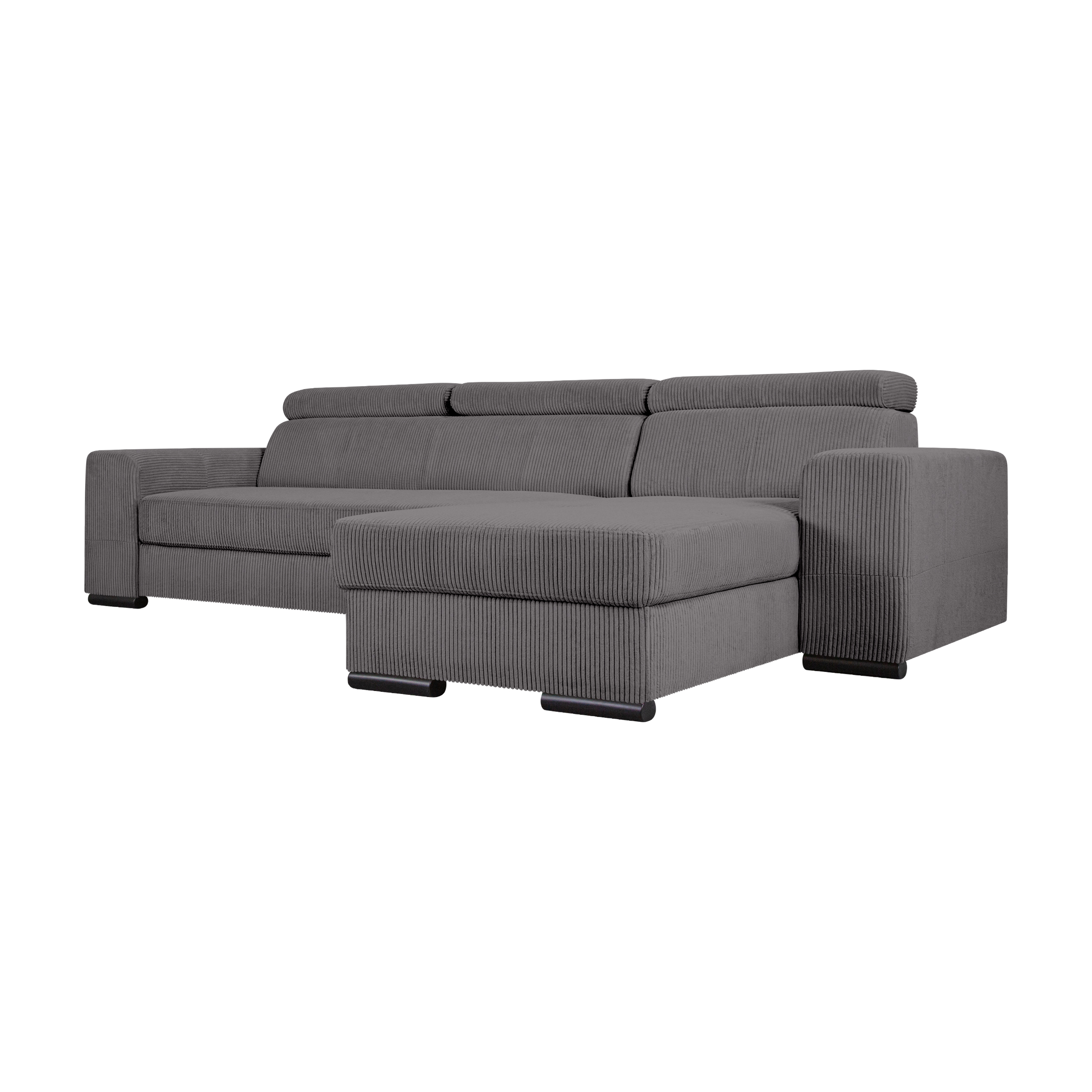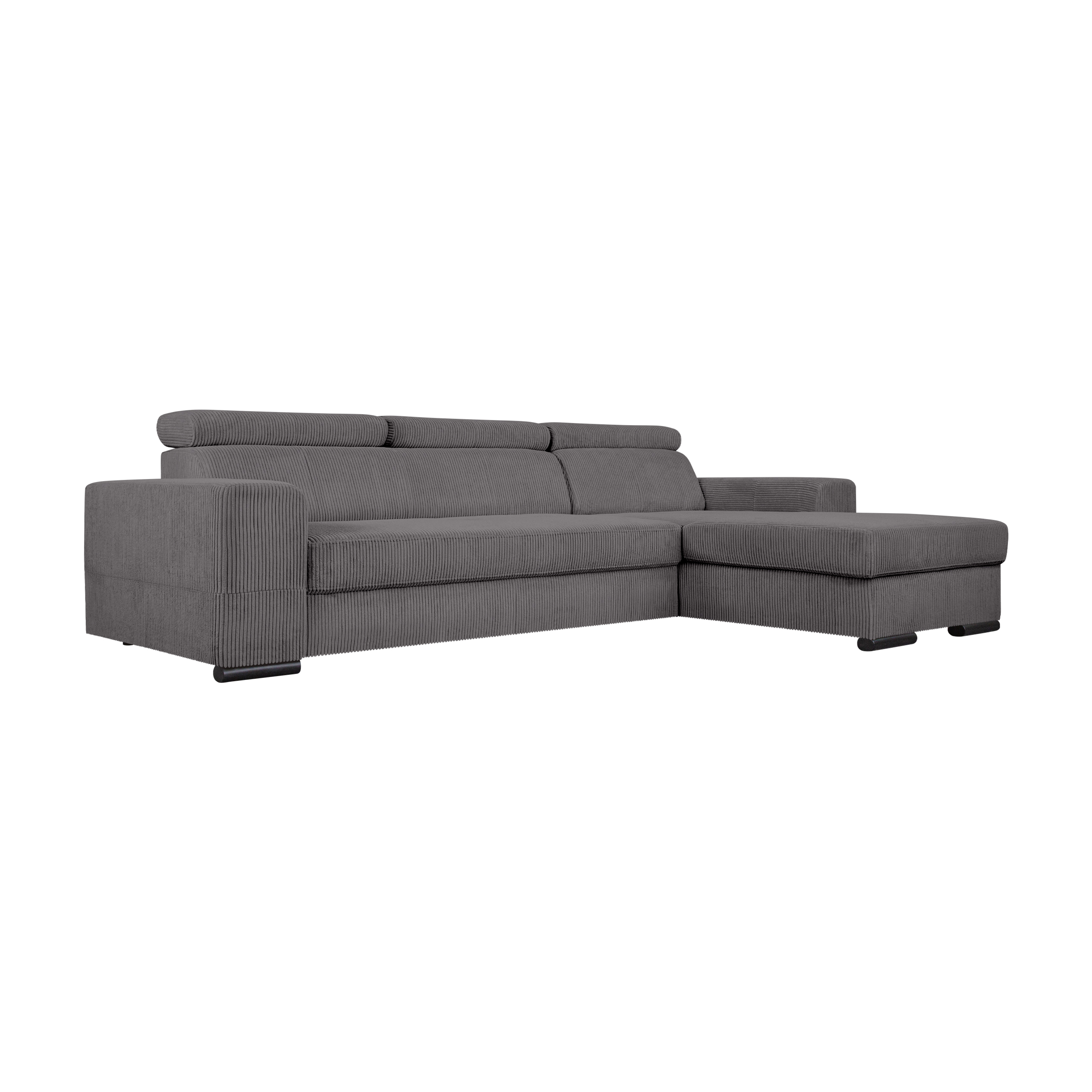Ecksofa Dolores rechts mit Schlaffunktion, Bettkasten, verstellbare Kopfstützen