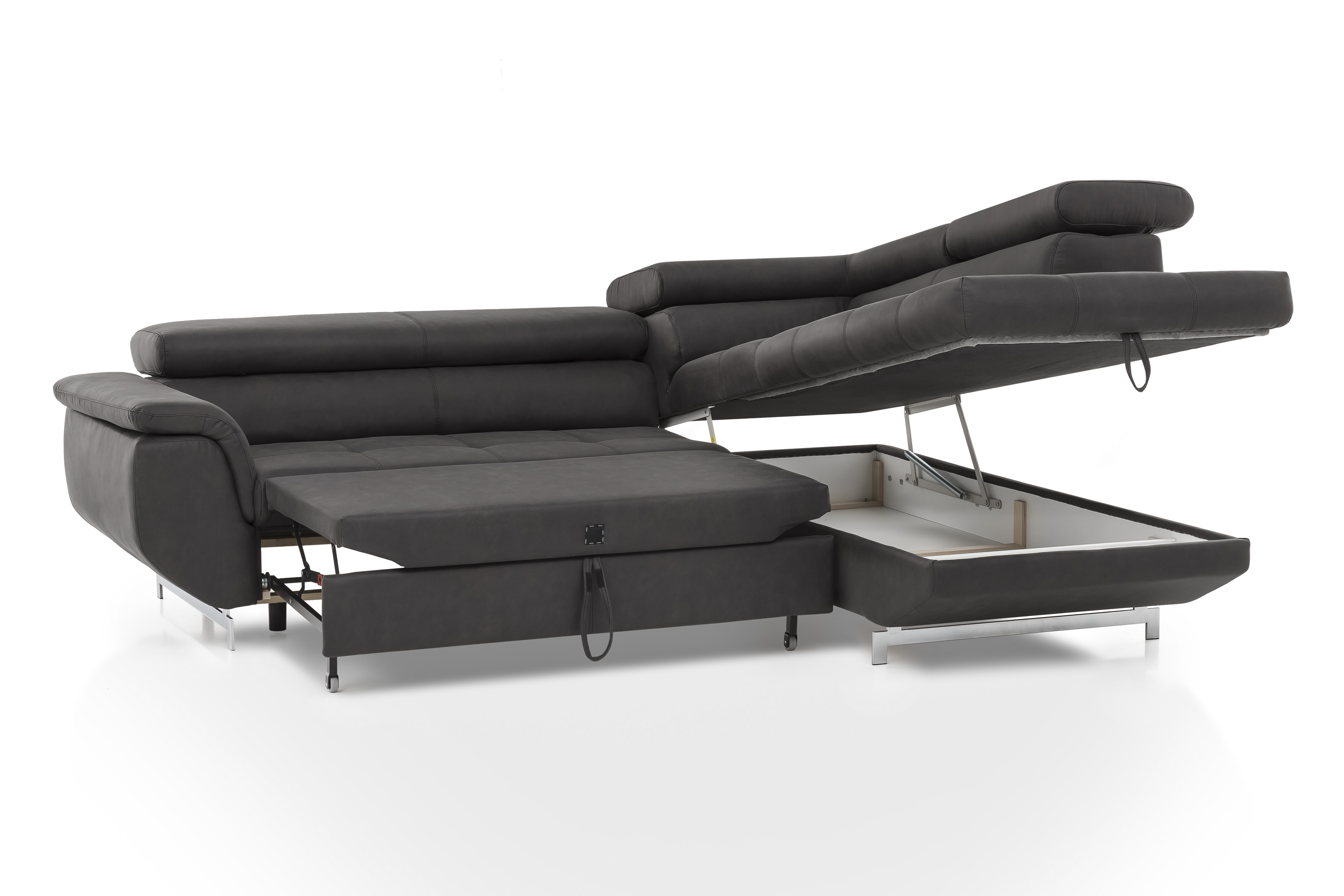 Ecksofa Femm: Stilvolles Design mit Schlaffunktion, Bettkasten und verstellbaren Kopfstützen