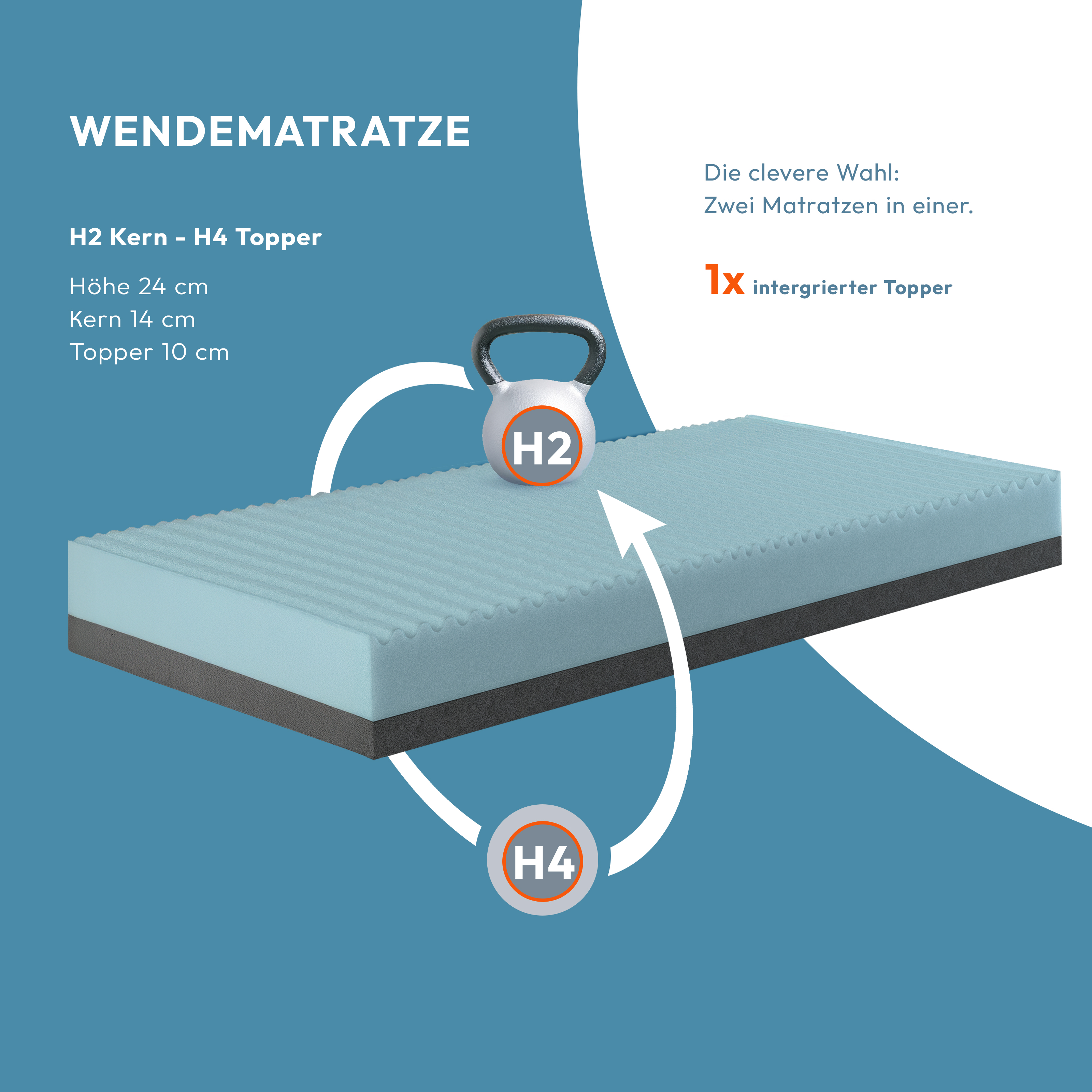 H2/H3 Matratze 140x200 cm TOP Hybrid Head 24 cm 7-Zonen