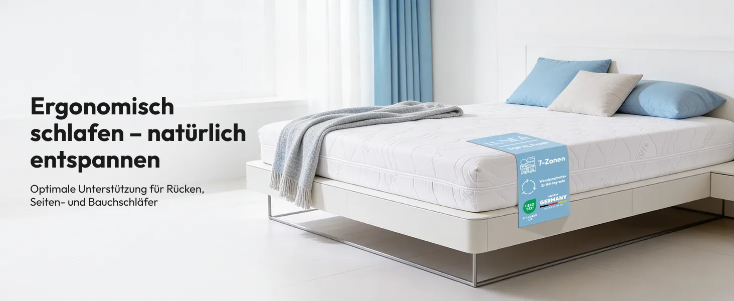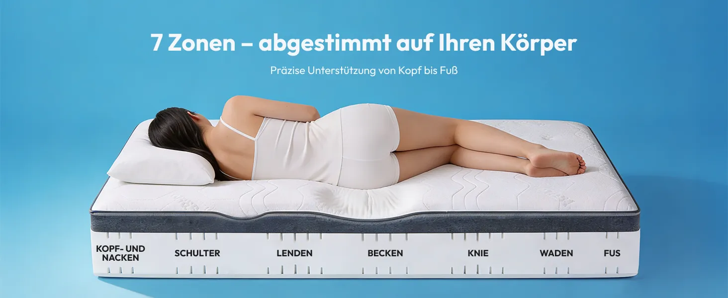 Die präzise unterteilten Zonen passen sich Ihrem Körper an und sorgen für gezielte Entlastung der wichtigsten Körperbereiche.