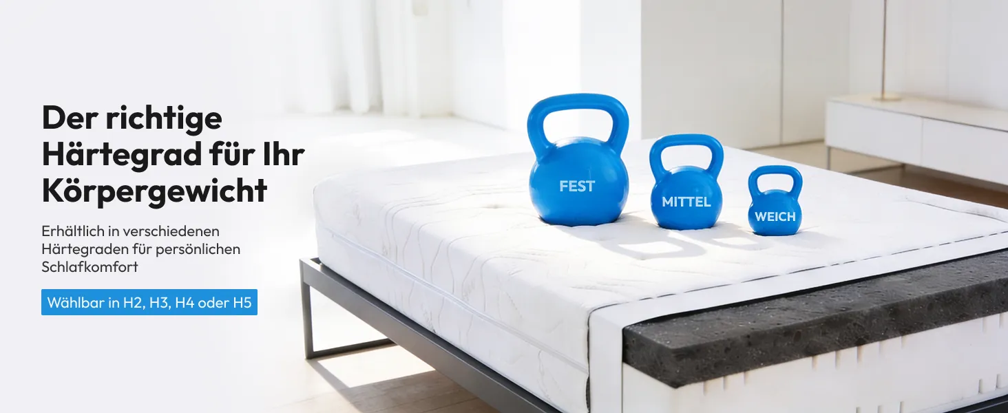 - Topper: 10 cm – wählbar in den Härtegraden H2, H3, H4 oder H5