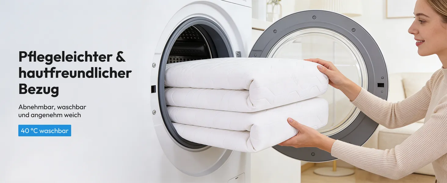 Der Bezug lässt sich dank des 4-seitigen Reißverschlusses problemlos abnehmen und ist bis 40°C waschbar – ideal für eine einfache Reinigung.