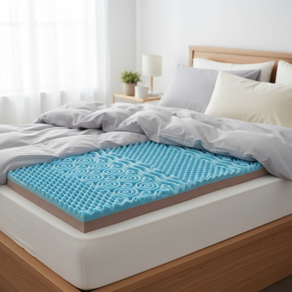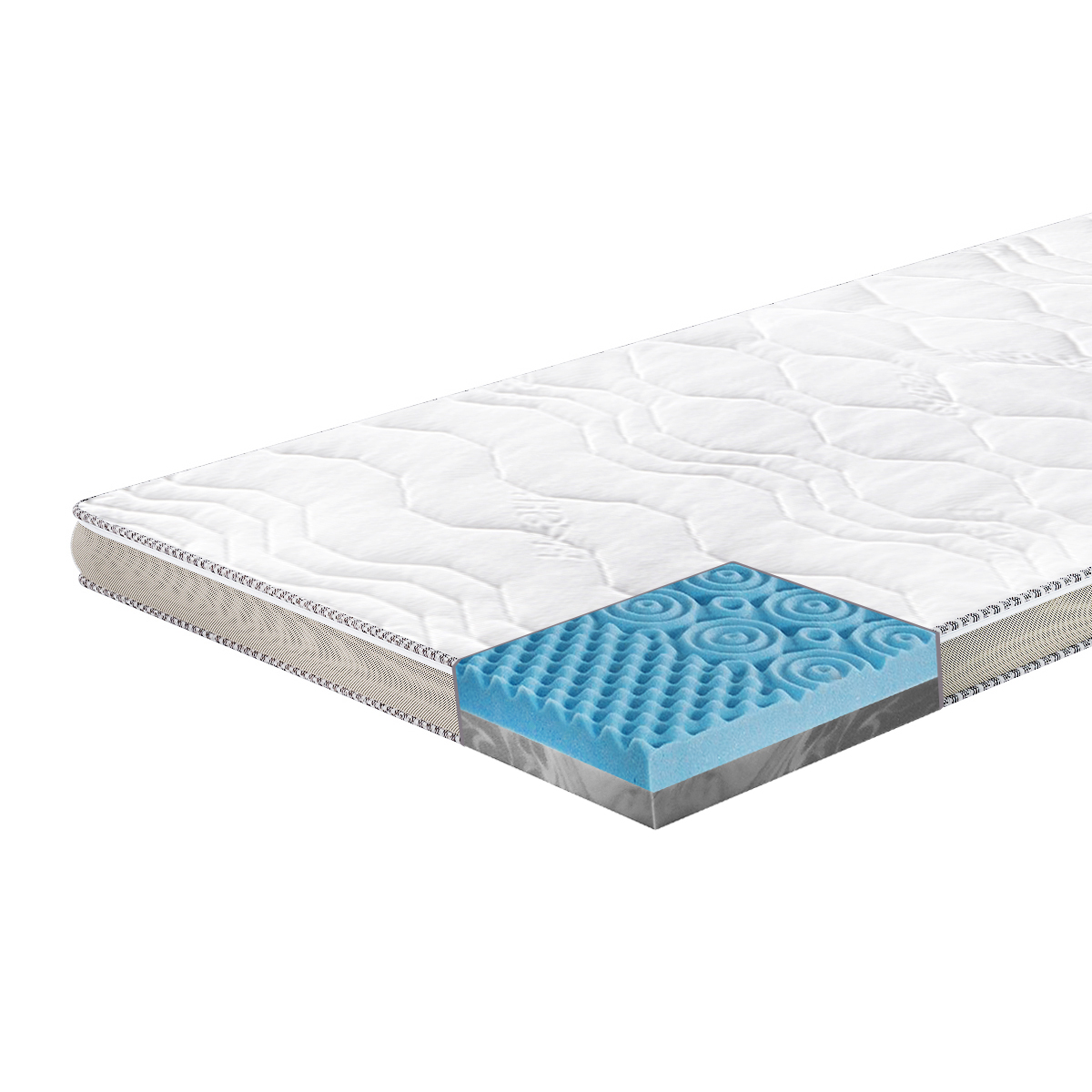 Der 7-Zonen-Wellenstruktur-Kaltschaum-Kern des Toppers sorgt für eine optimale Anpassung an die individuelle Körperform. Die punktuelle Elastizität und die offene Porenstruktur fördern eine exzellente Belüftung, wodurch Feuchtigkeit und Wärme effektiv abgeleitet werden – für ein stets trockenes und angenehmes Schlafklima. In Kombination mit der Matratze ermöglicht der höhere Federweg ein hervorragendes Liegegefühl und fördert die Blutzirkulation. Die sieben Zonen bieten gezielte Unterstützung für unterschiedliche Körperbereiche wie Schultern, Rücken und Hüften, entlasten die Wirbelsäule und sorgen für eine ergonomische Schlafposition. So werden Druckpunkte signifikant reduziert und das nächtliche Wenden minimiert, was Ihre Schlafqualität steigert.