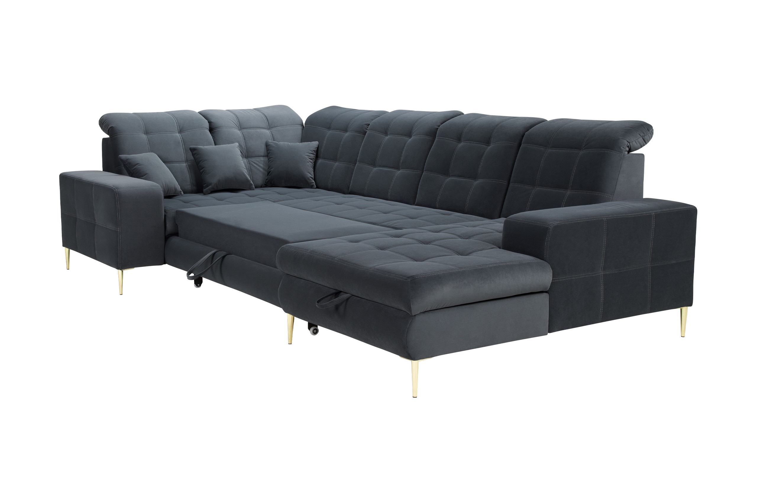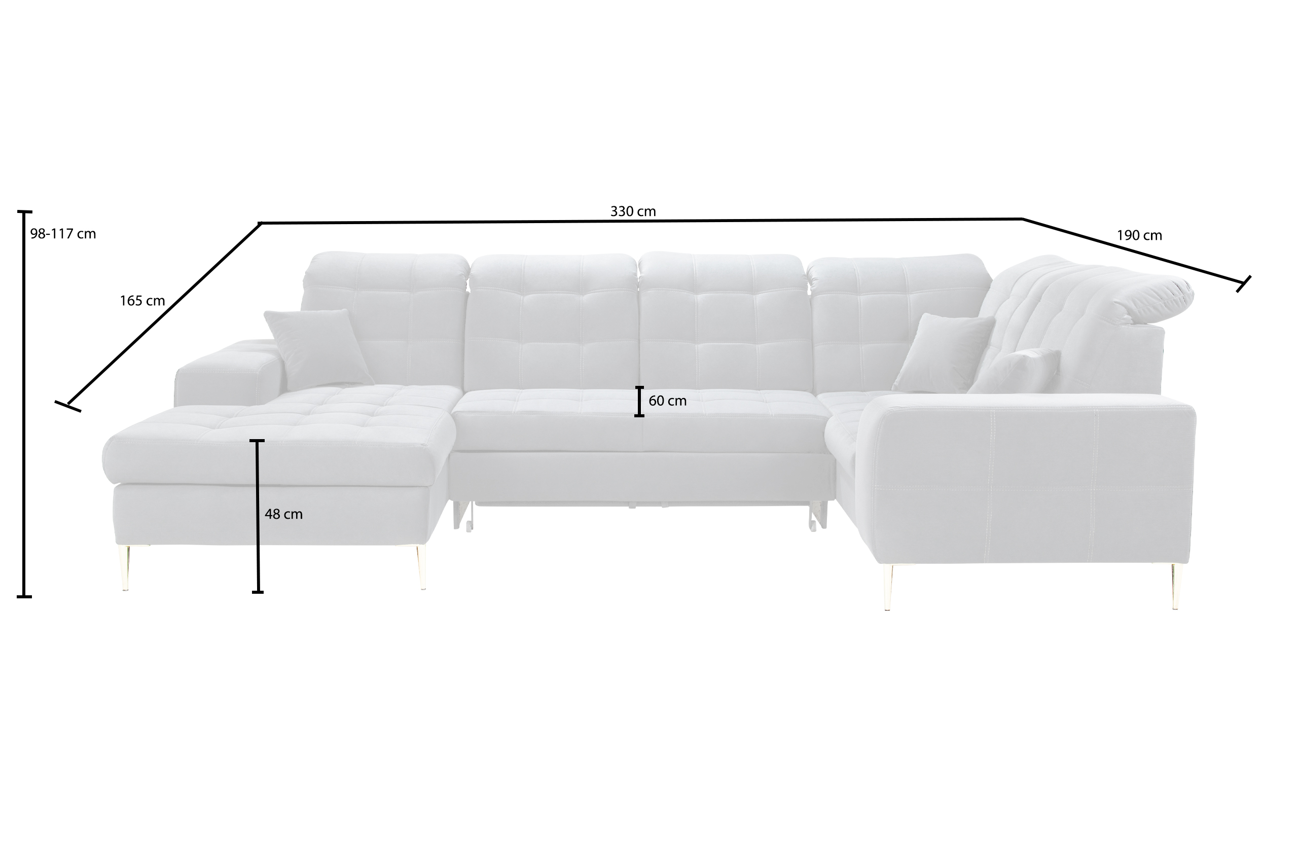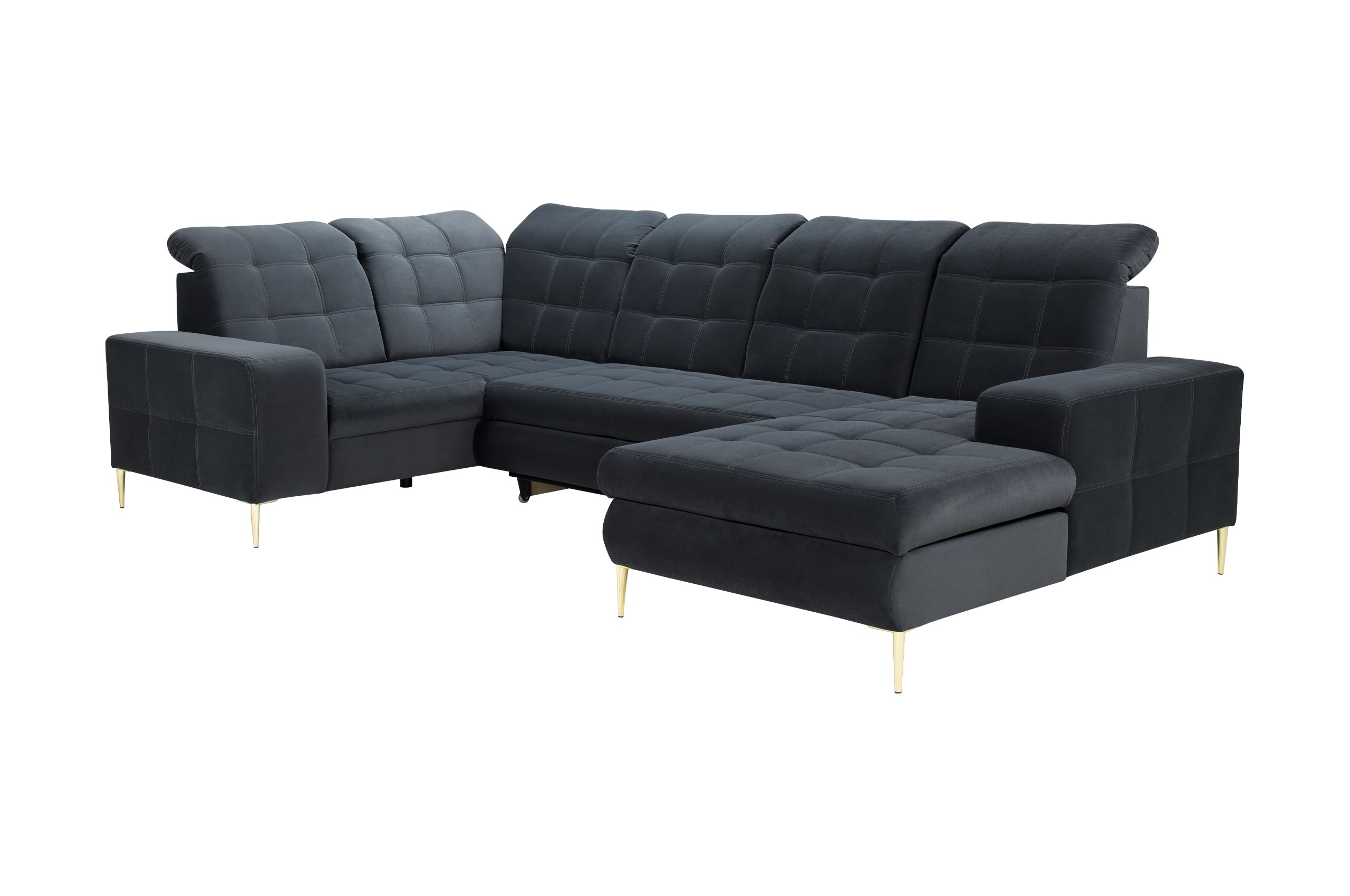 Wohnlandschaft Amber mit Schlaffunktion, Ottomane, verstellbare Kopfstützen