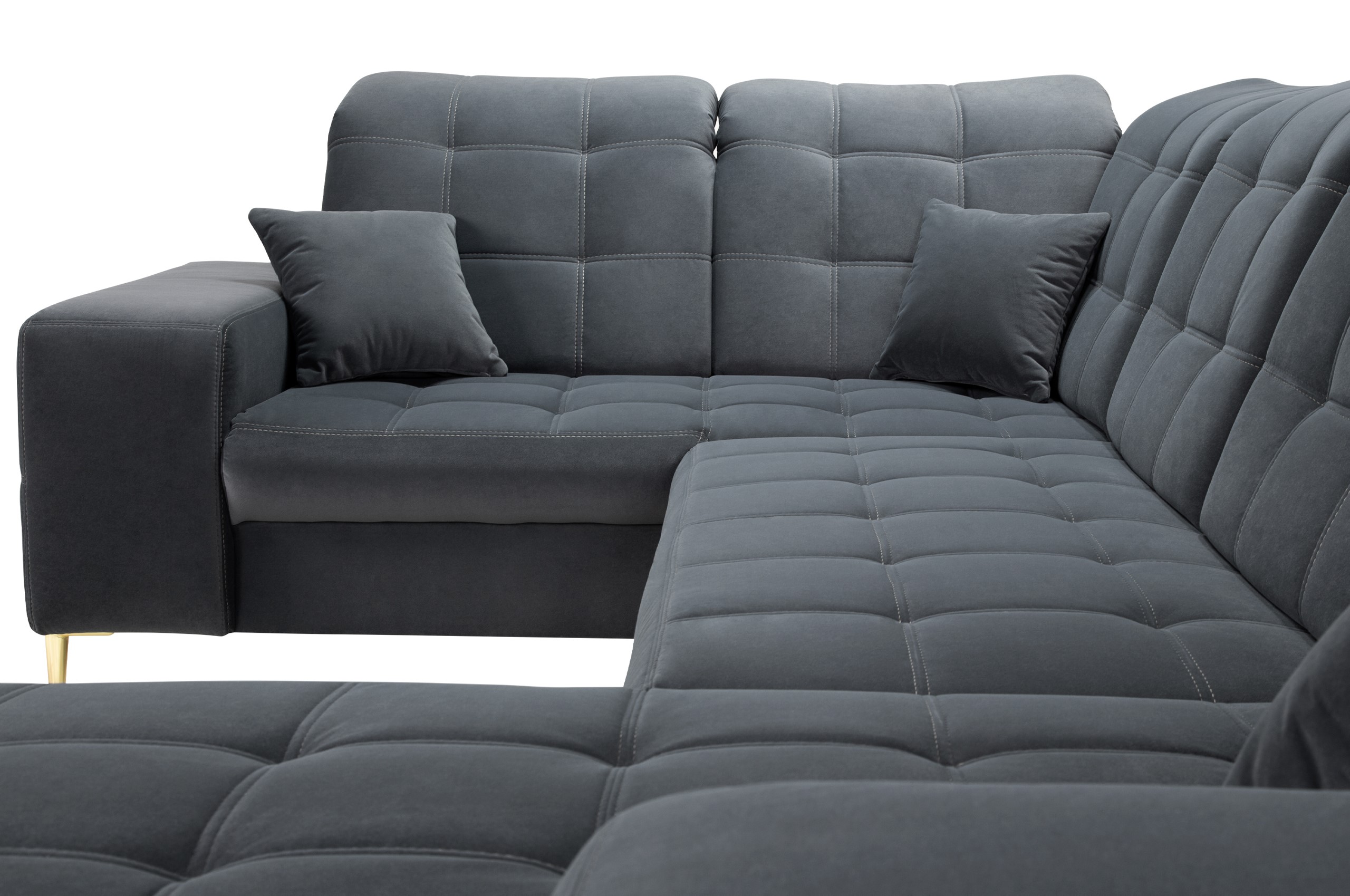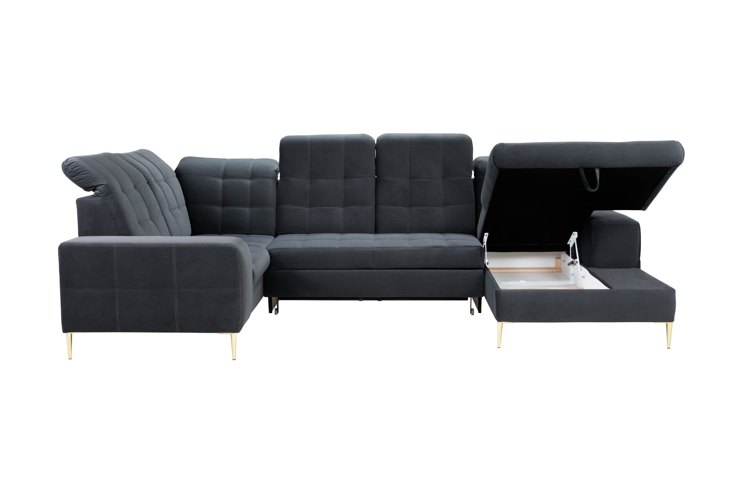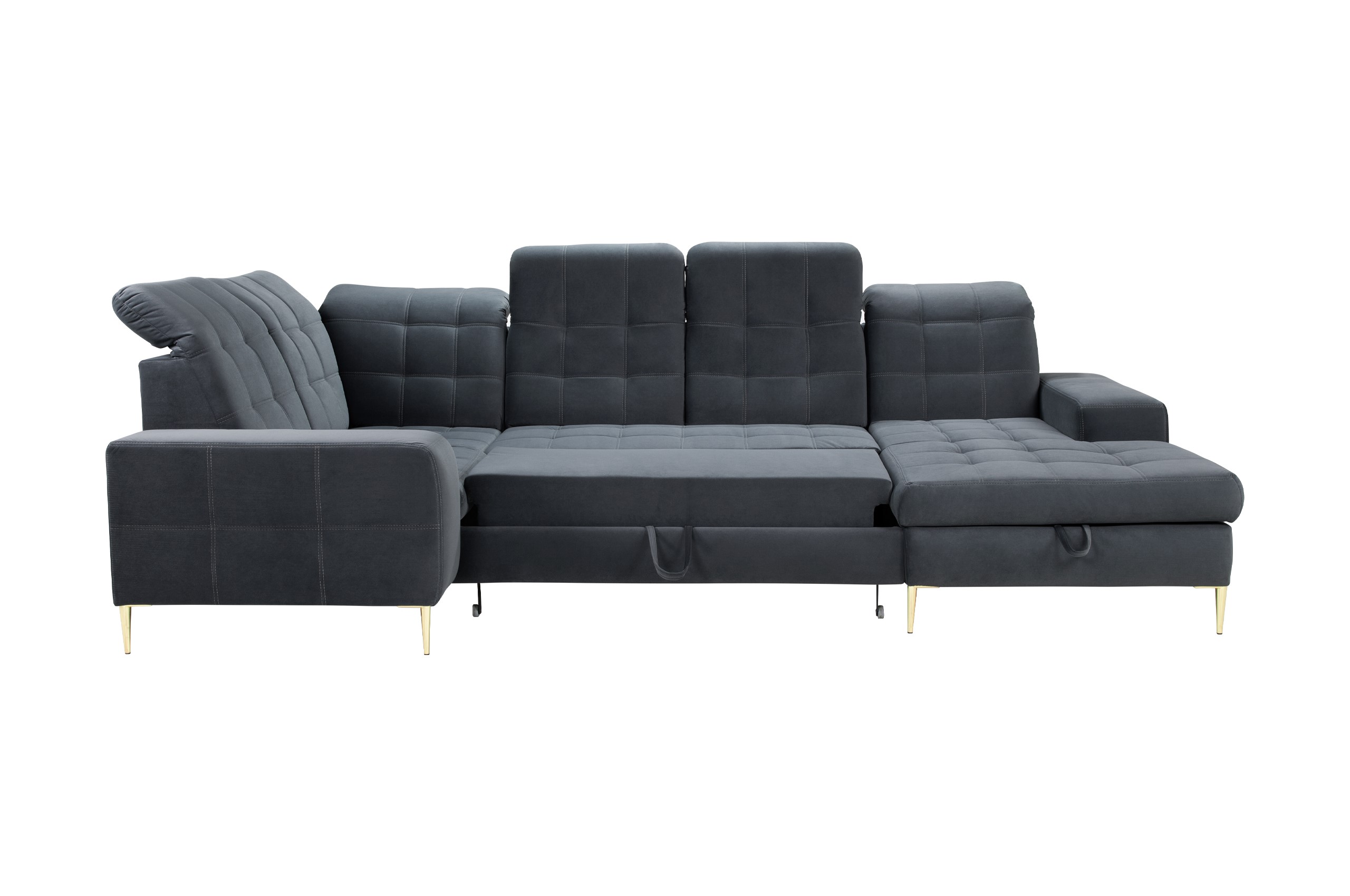 Wohnlandschaft Amber mit Schlaffunktion, Ottomane, verstellbare Kopfstützen